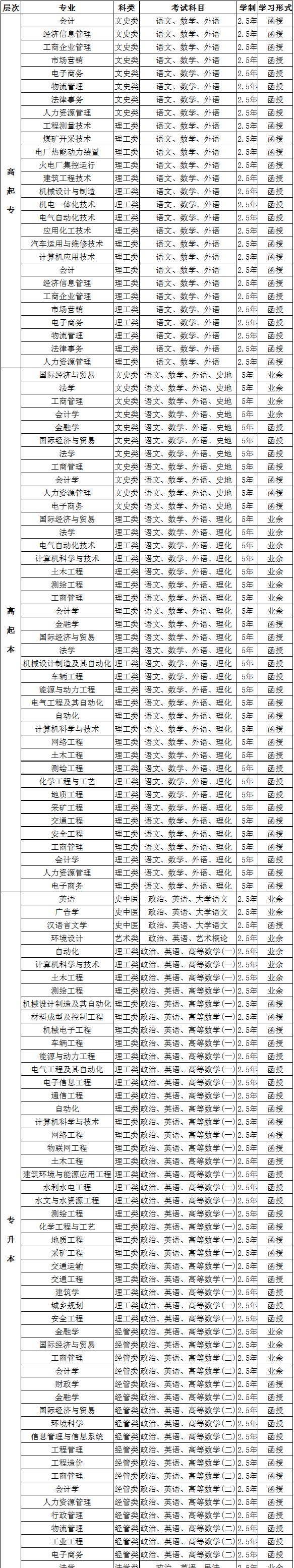 2019年山东科技大学成人高考招生专业: