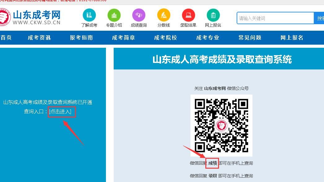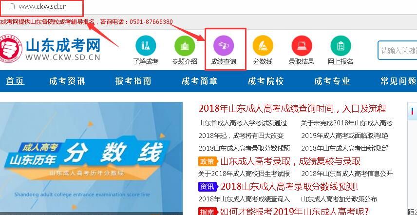 首先大家登陆在山东成考信息网,点击进入首页,在上方菜单栏看到成绩查询后点击