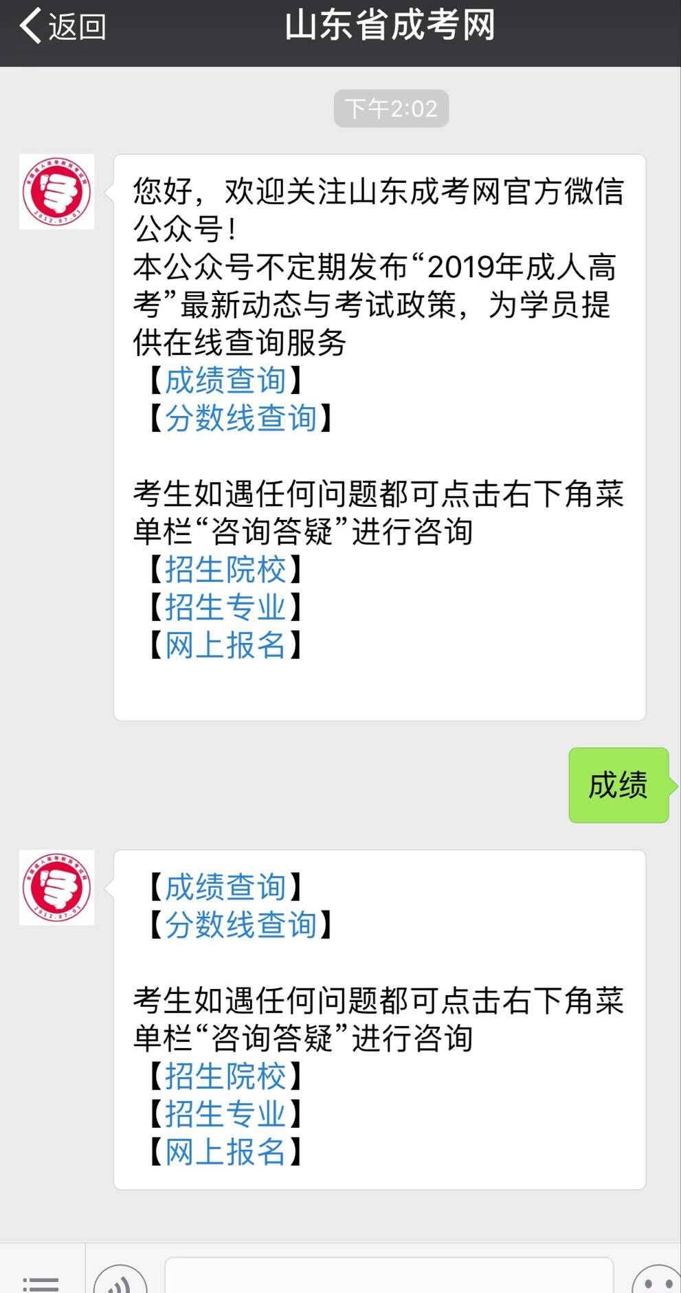 回复关键词“成绩”即可查询