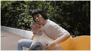 他喜欢小动物,就收留了6只狗狗4只猫。