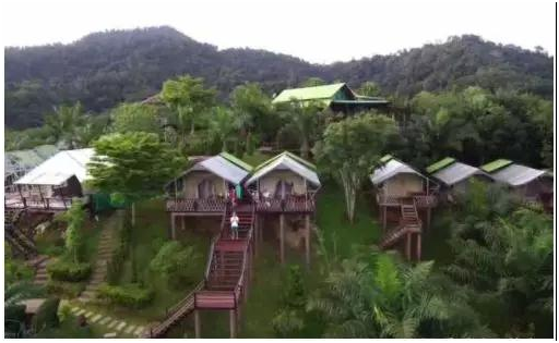 进门就是一个巨大的院子,毗邻着的是青翠欲滴的山峰。